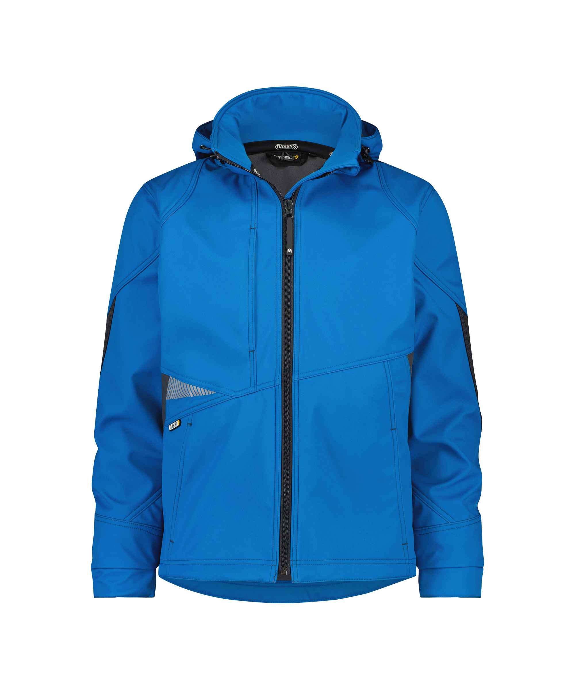De DASSY® D-FX Flex Gravity getuigt van sterk vakmanschap! Deze softshelljas, met Cordura(r) versterkingen aan de ellebogen, in waterdichte, winddichte en ademende mechanische stretchstof met fleece voeringstof beschermt je optimaal tegen wind en koude. Je kan de jas eenvoudig aan je noden aanpassen: draag hem met of zonder kap en regel zelf de onderkant van de jas dankzij de regelbare zoom met elastische koord.
