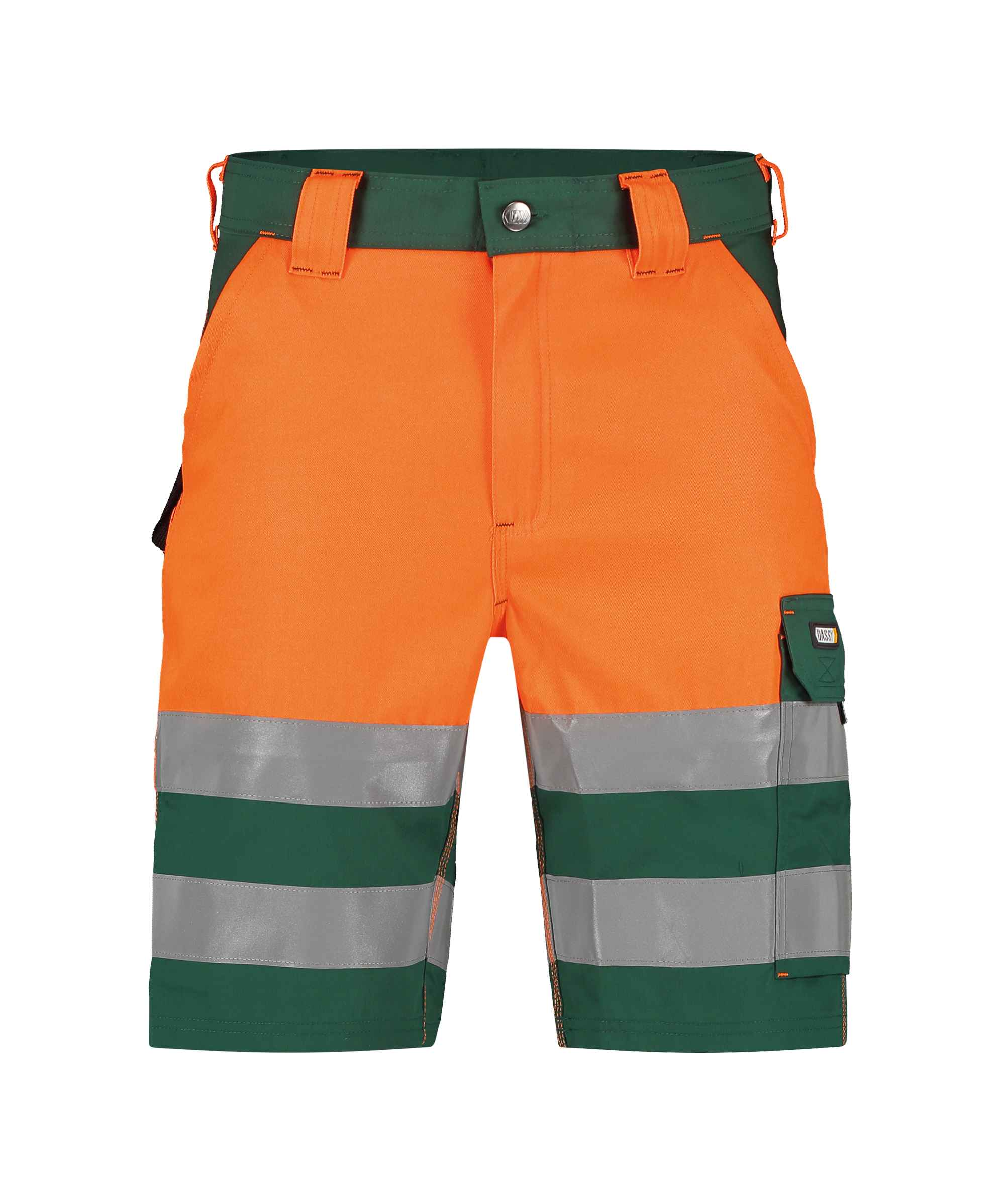 Deze korte werkbroek DASSY® Safety HiVis Venna biedt een hogezichtbaarheidsklasse 1 en diverse praktische opbergzakken.