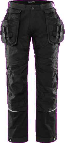 Deels gerecycled en bio-based materiaal / 4-way stretchmateriaal / CORDURA®-verstevigingen op voorzijde dijen / 2 afneembare loshangende zakken van CORDURA®, beiden met 3 kleinere zakjes en gereedschapslussen – zakken zijn afneembaar met verborgen rits en drukknoopsluiting / Gulp met rits / 2 steekzakken / 2 achterzakken / Dubbel verstevigde kruisnaad / Dijbeenzak met rits en ventilerende mesh aan binnenzijde / CORDURA® duimstokzak met gereedschapszak en pennenzakje / CORDURA® dijbeenzak met drukknoopsluiting voor mobiele telefoon / Voorgevormde knieën / Met CORDURA®-verstevigde kniezakken met opening aan de buitenzijde / Mogelijkheid tot aanpassen hoogte van de kniebeschermer / Ritsen aan beide zijden van de knieën voor ventilatie / Met CORDURA®-verstevigd uiteinde van de pijp, verstelbaar met drukknopen / Voorzijde pijpen iets verlengd / Reflectiedetails op voor- en achterzijde / Goedgekeurd volgens EN 14404 gecombineerd met kniebeschermers 132082, 124292 / OEKO-TEX® gecertificeerd.