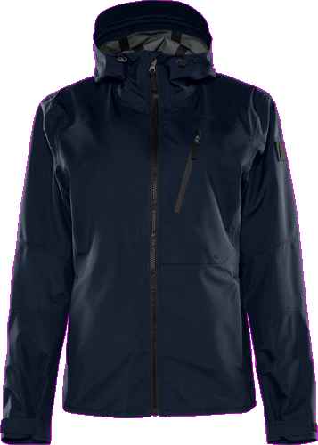 Water- en winddicht / Getapete naden / Fluorkoolwaterstofvrije waterafstotende behandeling / Verstelbare capuchon met verstevigde klep en trekkoord / Waterafstotende rits in de voorkant over de hele lengte / Voorgevormde mouwen / 1 borstzak met waterafstotende rits / 2 voorzakken met rits / Elastische mouwuiteinden en onderkant / Verlengd rugpand / Waterkolom > 10.000 mm / Ademend vermogen 15.000 gram (g/m²/24 uur) / e-dye® / OEKO-TEX®-gecertificeerd.